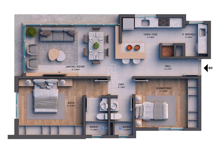 • Área Total Privativa:77,54 m²