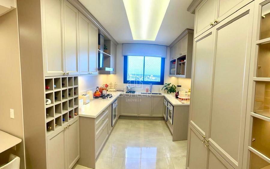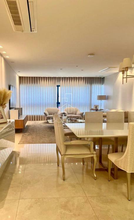 Apartamento mobiliado e decorado, alto padrão em todos os detalhes. 3 suítes amplas e espaçosas, sendo a primária com amplo closet e banheiro. Corredor espaçoso, podendo ser colocado um escritório. Lavabo com papel de parede da marca Gucci. Hall de entrada. Cozinha. Área de serviço ampla com banheiro e espace para aspiração central. Sala de jantar com mesa para 10 lugares, sala de estar com a maravilhosa vista do campo do quartel.